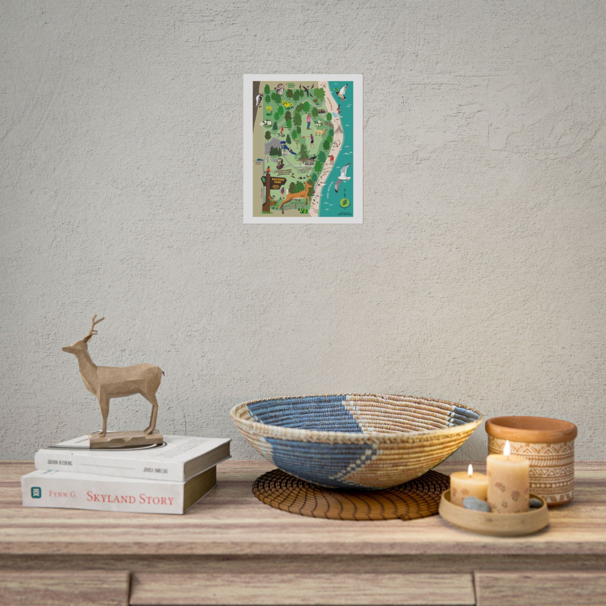This poster was designed by Scott Schiller. Scott is a native of Wisconsin and enjoys all the state's parks have to offer. He previously worked as an art director and zookeeper, and now works as a freelance illustrator in various styles and media, working on logos, book and magazine layouts, pet portraits and custom map illustrations.