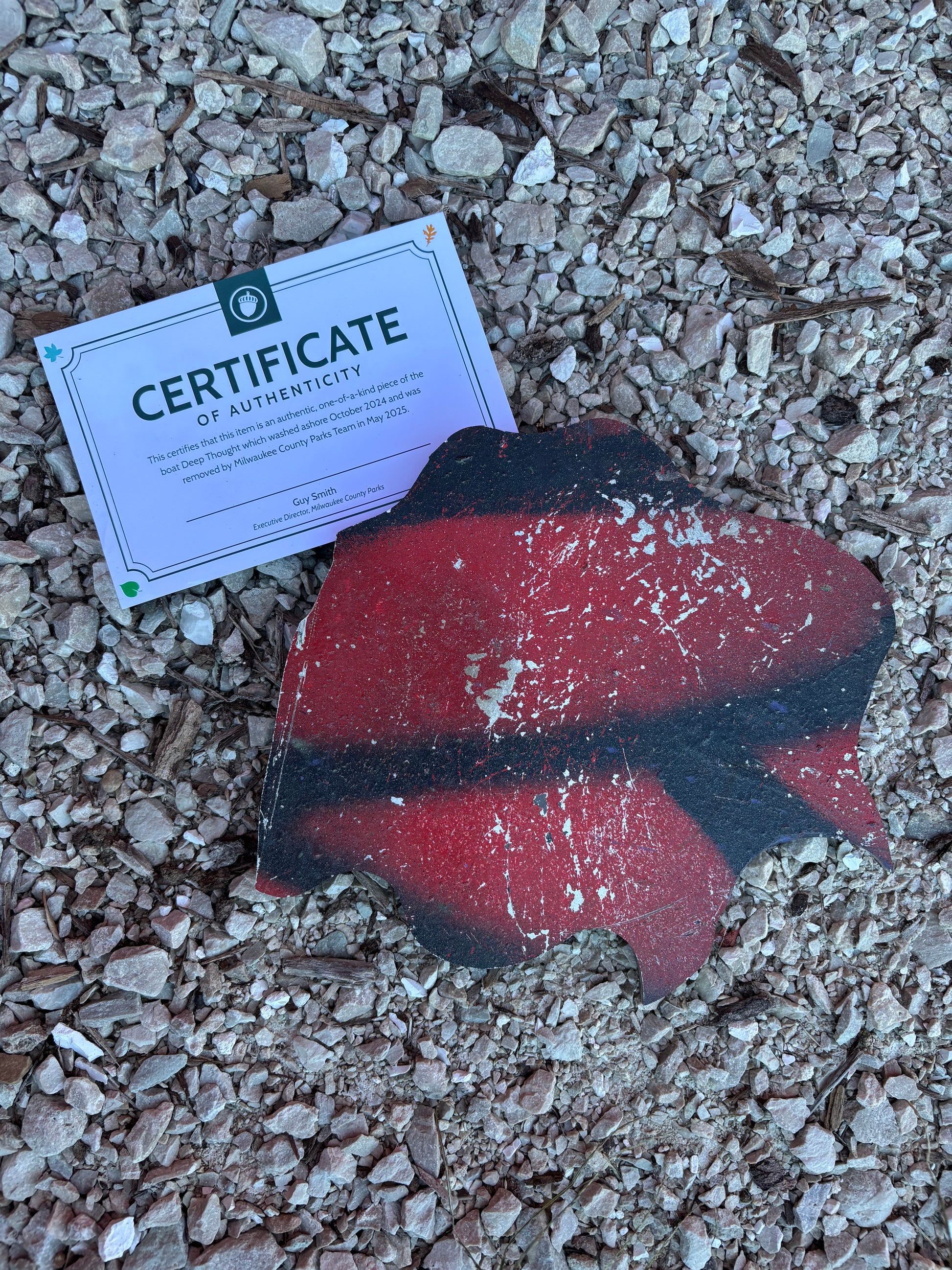 Get your hands on a one-of-a-kind piece of the boat Deep Thought. The boat washed ashore in October 2024 and was removed by Milwaukee County Parks team in May 2025.