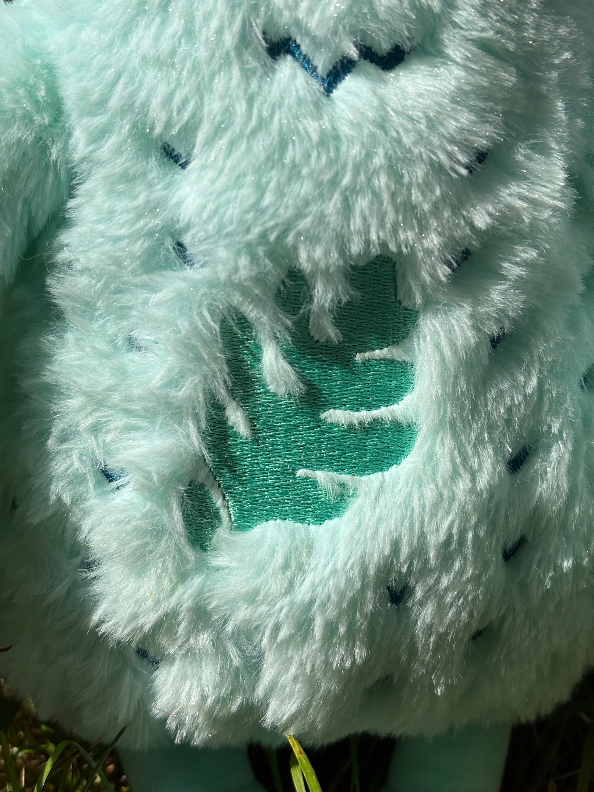This lovable, one-of-a-kind creature is ready to be your child's new best friend with his soft teal fur, gentle black eyes, and playful personality.