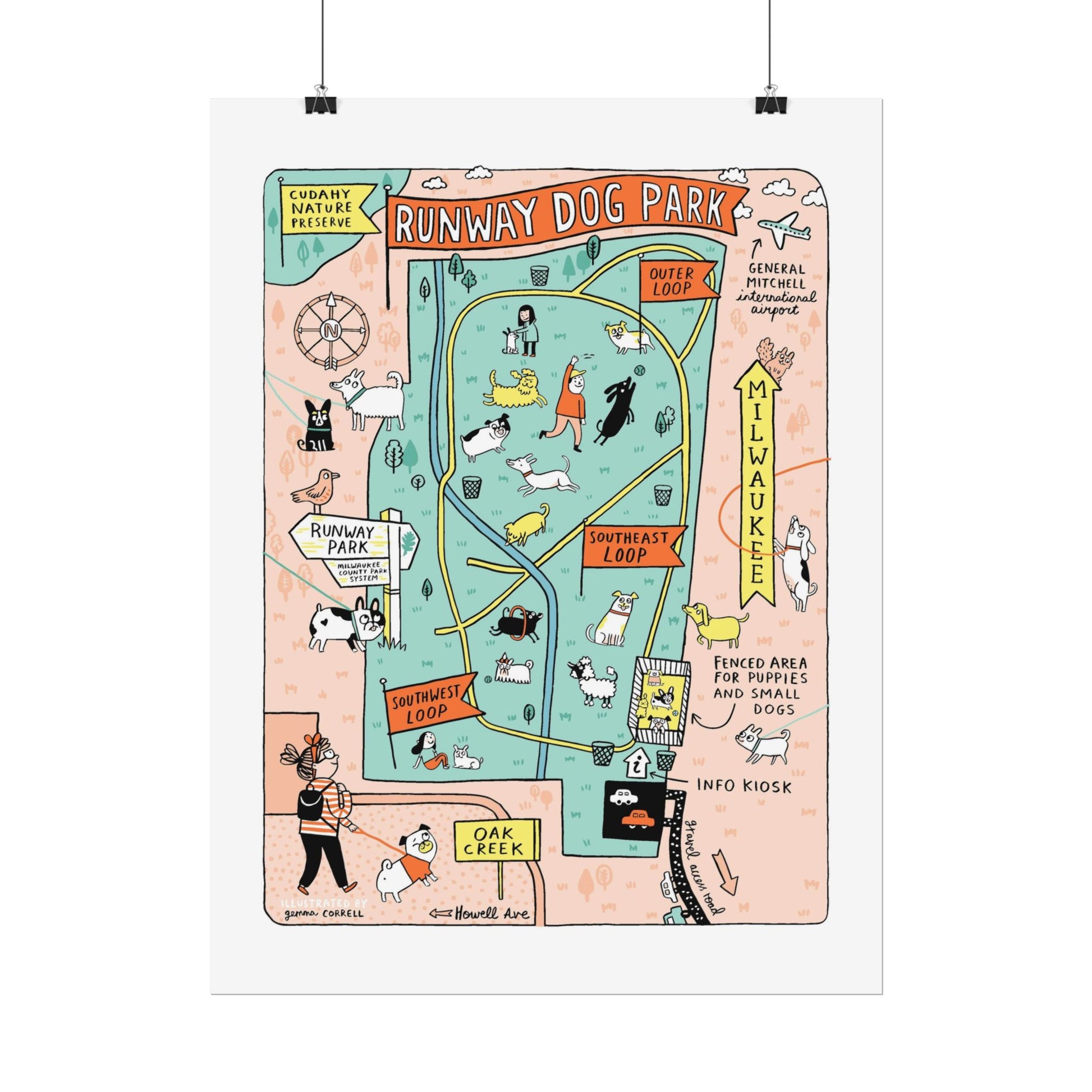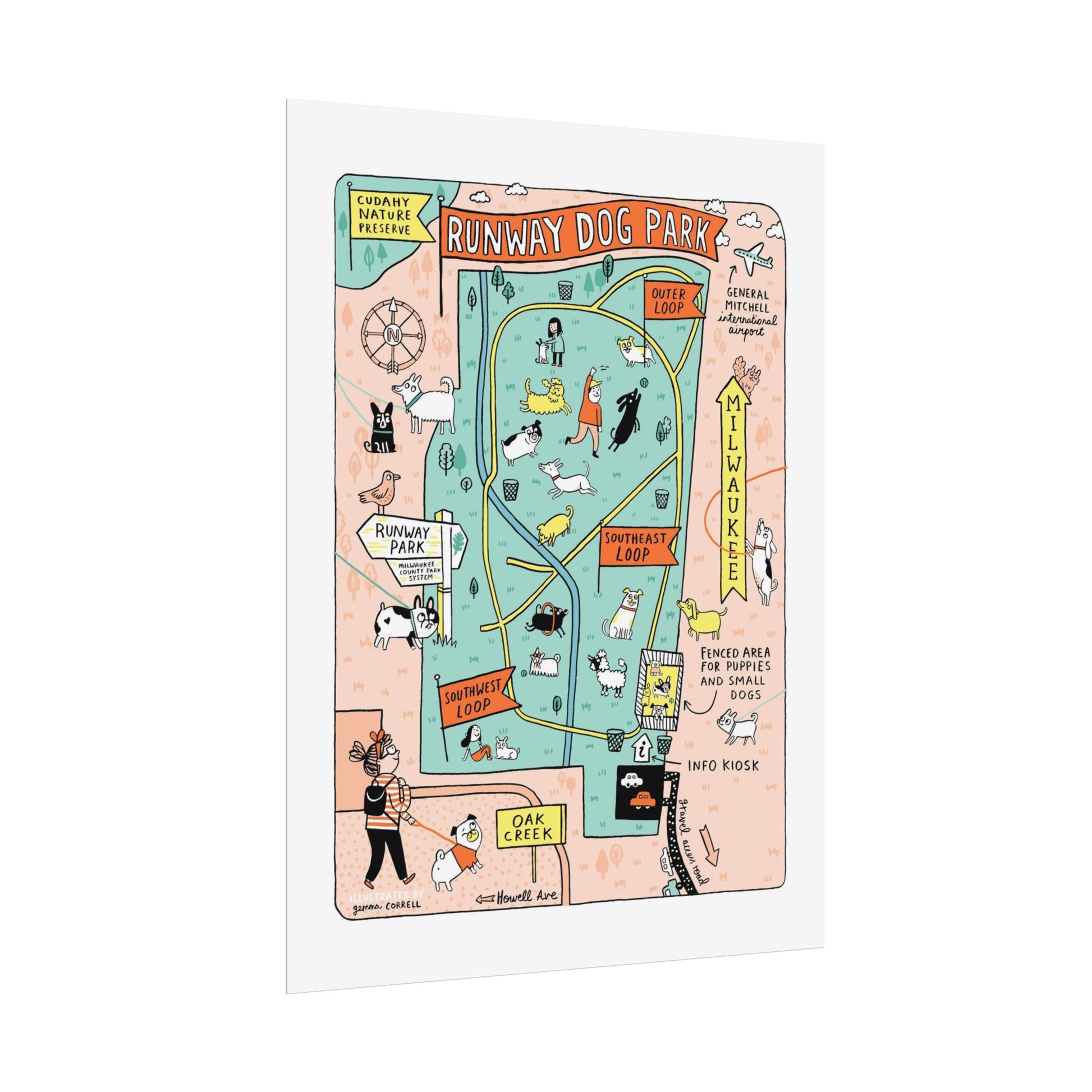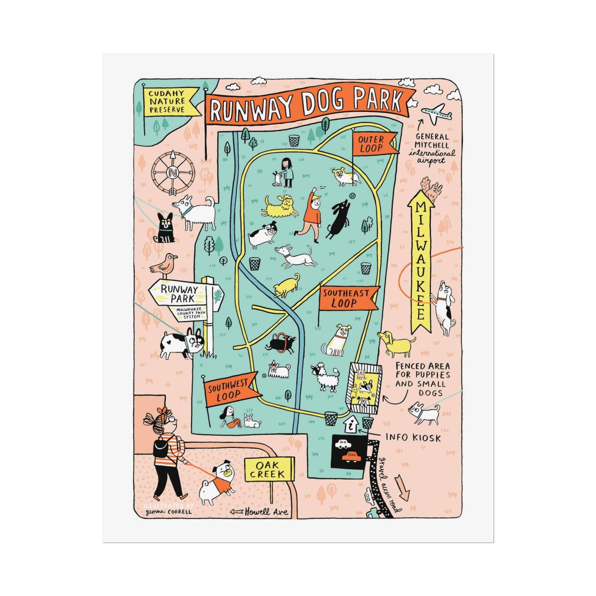 This poster was designed by Gemma Correll. Gemma is our only non-Milwaukee based illustrator taking part in Maptacular. Gemma is a British designer, now living in California, and describes herself as a cartoonist, writer, illustrator and all-round small person. As a pug enthusiast, she often visits the annual Milwaukee Pug Fest held at the Milwaukee County Sports Complex.